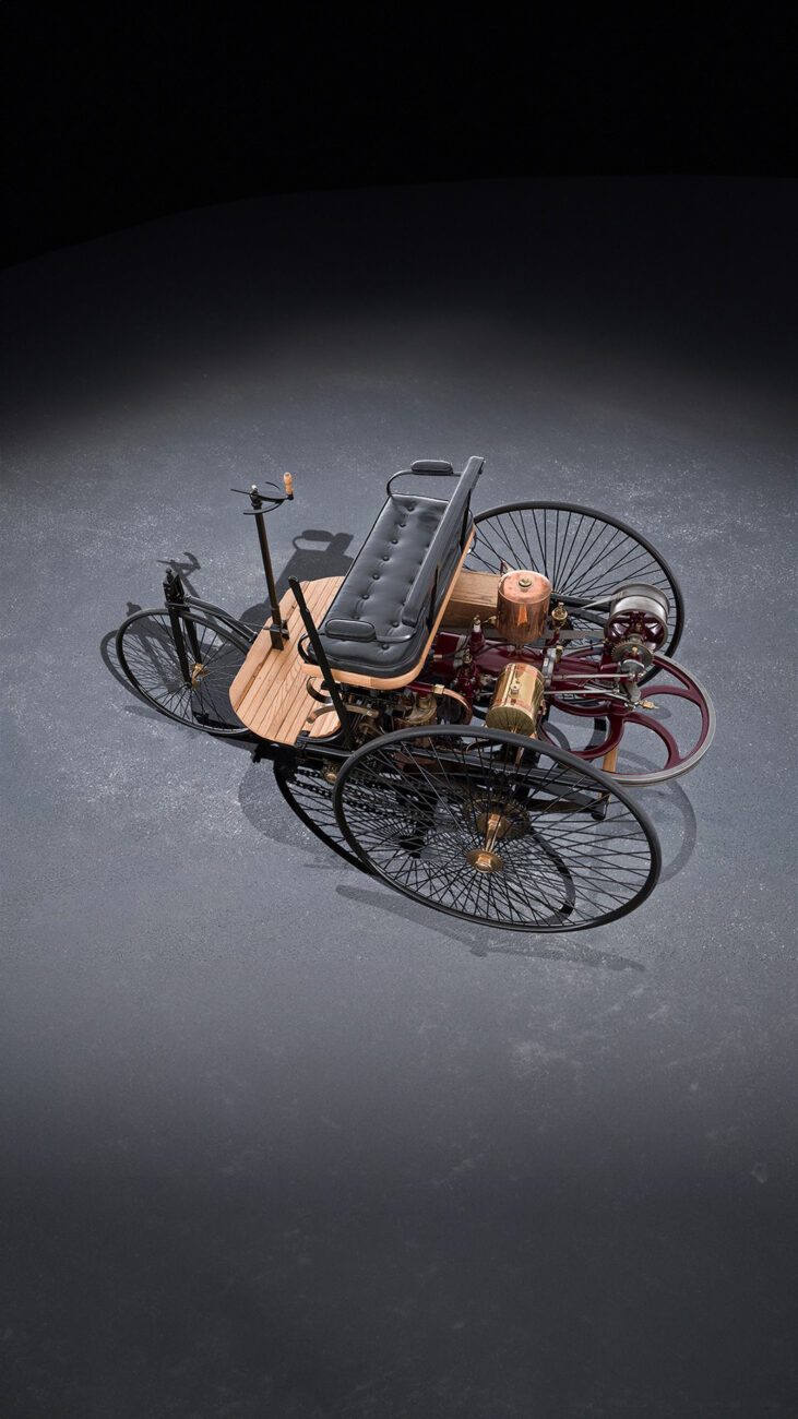 En 1885 Benz inició su gran proyecto, comenzó con la construcción de un motor de cuatro tiempos con un cilindro horizontal de 954 cm3 de desplazamiento, que podía girar a 400 rpm y alcanzar una potencia de 0,75 CV. El triciclo motorizado de Benz fue una novedad absoluta en todo el mundo ya que fue el primer vehículo impulsado por un motor de combustión interna. La velocidad máxima era de 16 km/h.
