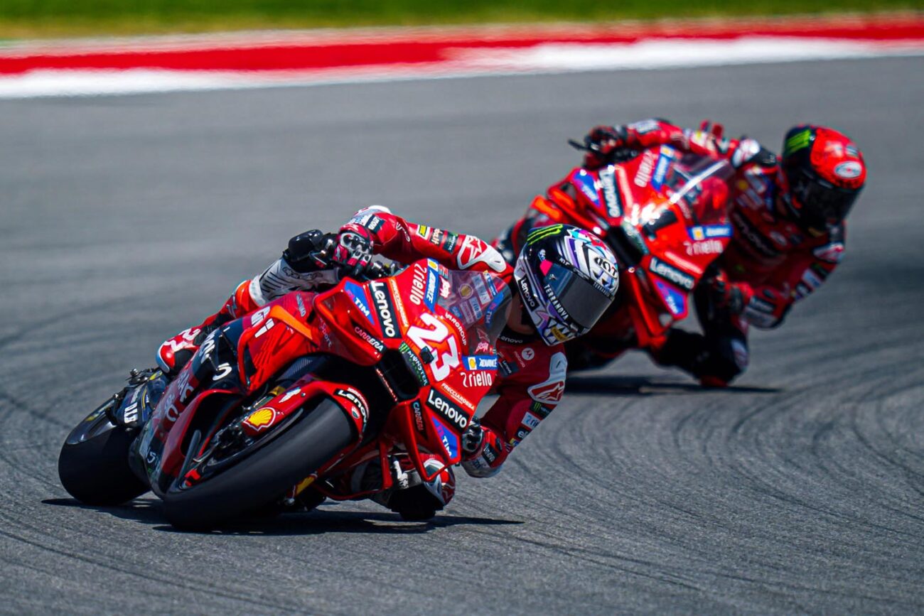 Los integrantes del Ducati Lenovo Team cerraron un fin de semana que alternó variadas sensaciones. Enea Bastianini, que clasificó el sábado en la quinta posición para encarar las dos competencias, fue sexto en la Sprint Race y obtuvo una posición de podio en el Gran Premio. Francesco Bagnaia, por su parte, arrancó en ambas pruebas desde el interior de segunda línea (fue cuarto en la Q2), finalizó octavo en la carrera del sábado y fue quinto al cabo de los 20 giros del GP.