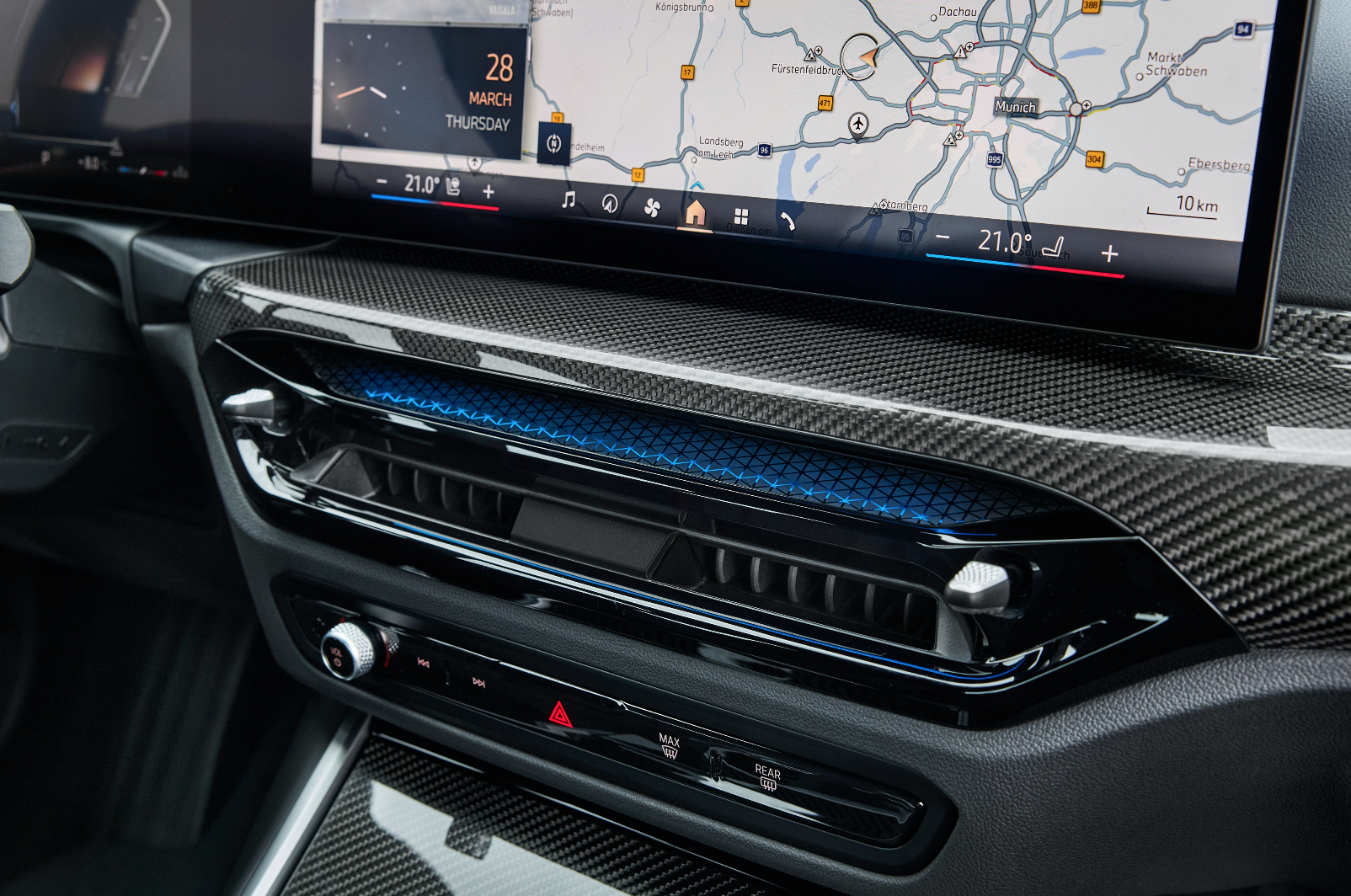La introducción del iDrive de BMW de última generación con QuickSelect basado en el BMW Operating System 8.5 en el nuevo BMW Serie 3 Sedán y el nuevo BMW Serie 3 Touring también trae una operación optimizada de las funciones de ventilación y control climático. Un concepto de operación enfocado estrictamente en el control táctil y el lenguaje natural permite una reducción adicional en el número de botones y controles físicos en la cabina. La selección de la temperatura, la intensidad de la ventilación, la calefacción de los asientos y, si se especifica, la calefacción del volante, ahora se pueden ajustar en el BMW Curved Display o por comando de voz con la ayuda del BMW Intelligent Personal Assistant. Nuevos controles de ajuste para las rejillas de ventilación en el centro del panel de instrumentos y en el lado del conductor y del pasajero delantero de la cabina permiten ajustar la intensidad y la dirección del flujo de aire mediante movimientos rotativos o de inclinación.