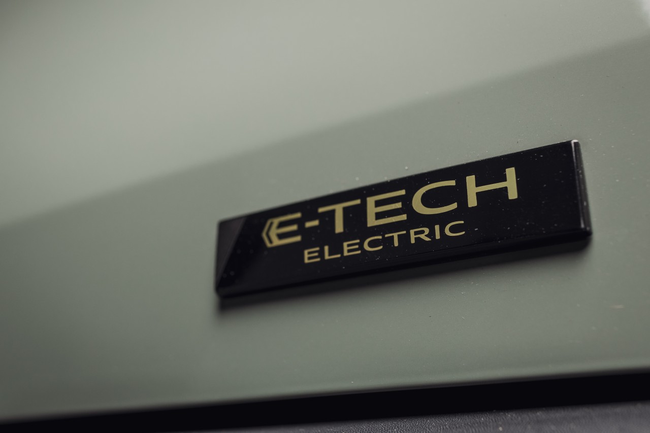 Adicionalmente, en los laterales cuenta con unos adhesivos en negro y dorado y la inscripción E-Tech refuerza la identidad del vehículo 100% eléctrico.
